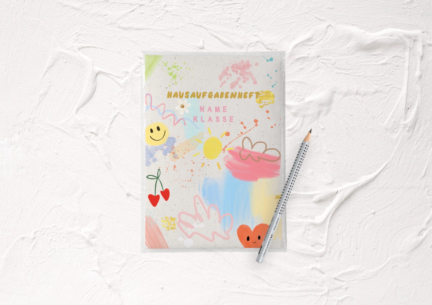 Ein Hausaufgabenheft ist nicht inklusive, das muss selbst gekauft und eingelegt werden. Nur die Hülle wird erworben.