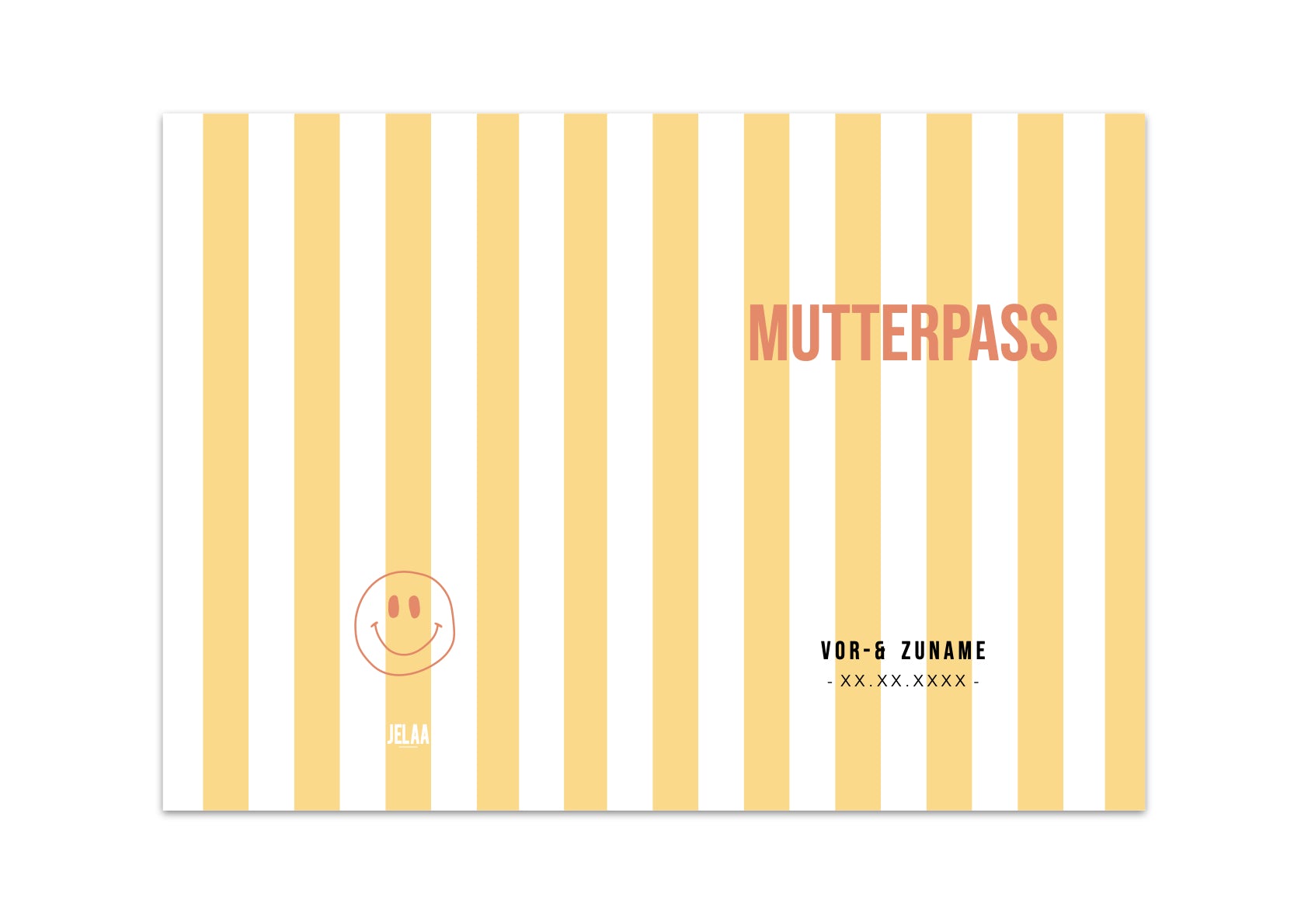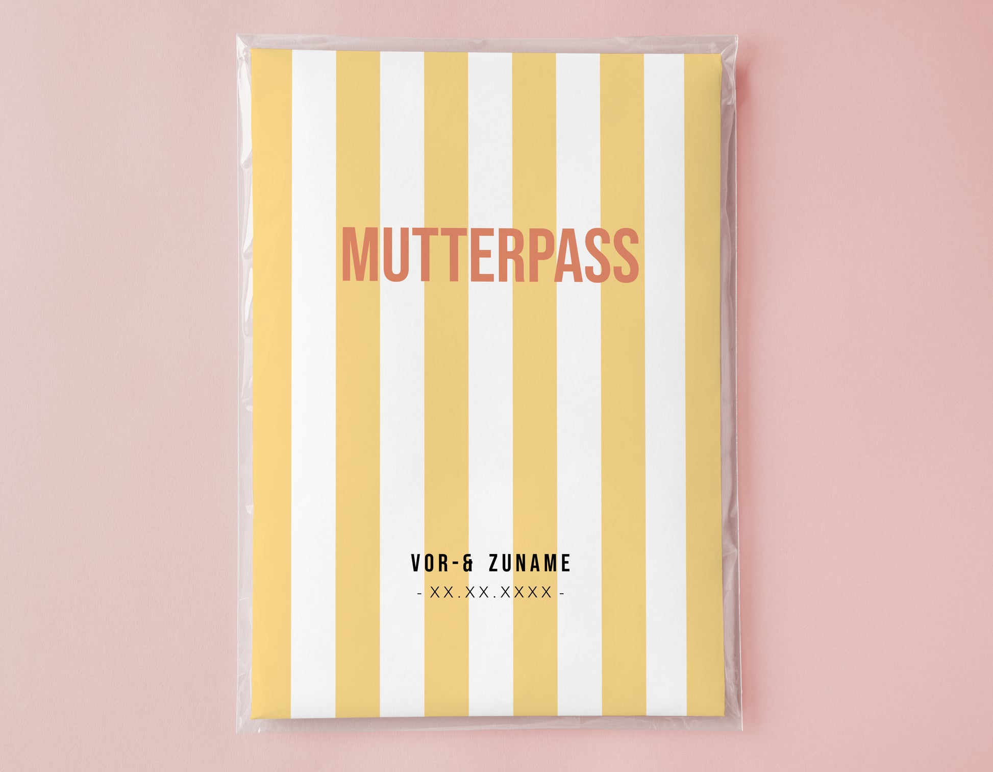 MUTTERPASSHÜLLE - Gestreift gelb weiss personalisiert