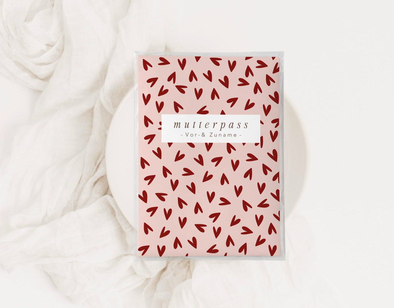 MUTTERPASSHÜLLE - Herzen rot rosa personalisiert