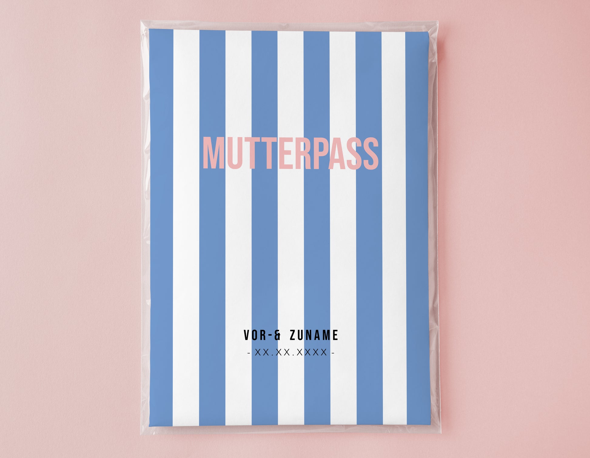 Der Einleger wird personalisiert und auf besonders hochwertigem, dicken Papier mit Spezialbeschichtung gedruckt und in eine durchsichtige Schutzhülle aus starkem PVC eingelegt. Darin kann dann ganz einfach der eigene Mutterpass geklemmt werden.