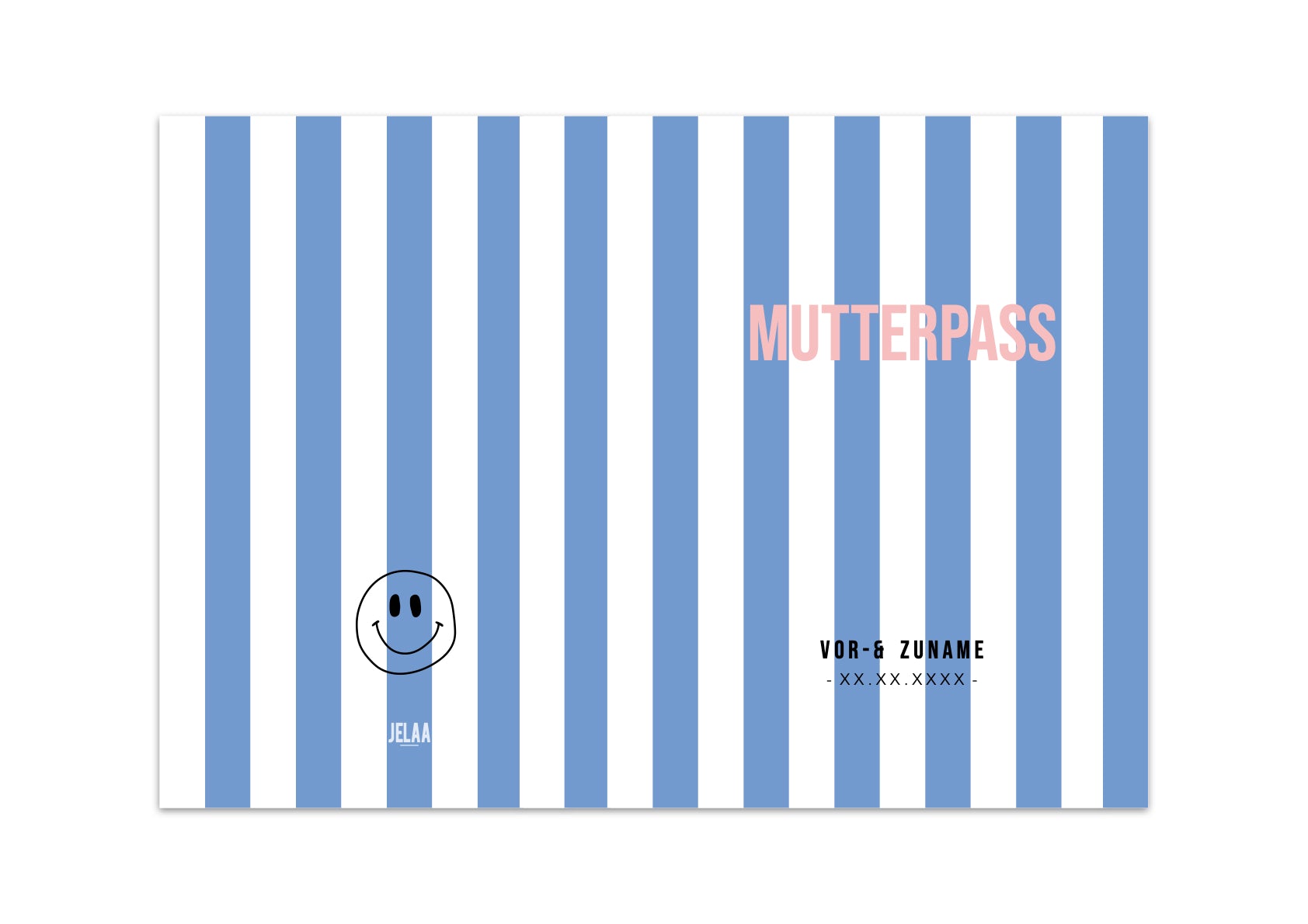 MUTTERPASSHÜLLE - Gestreift blau weiss personalisiert