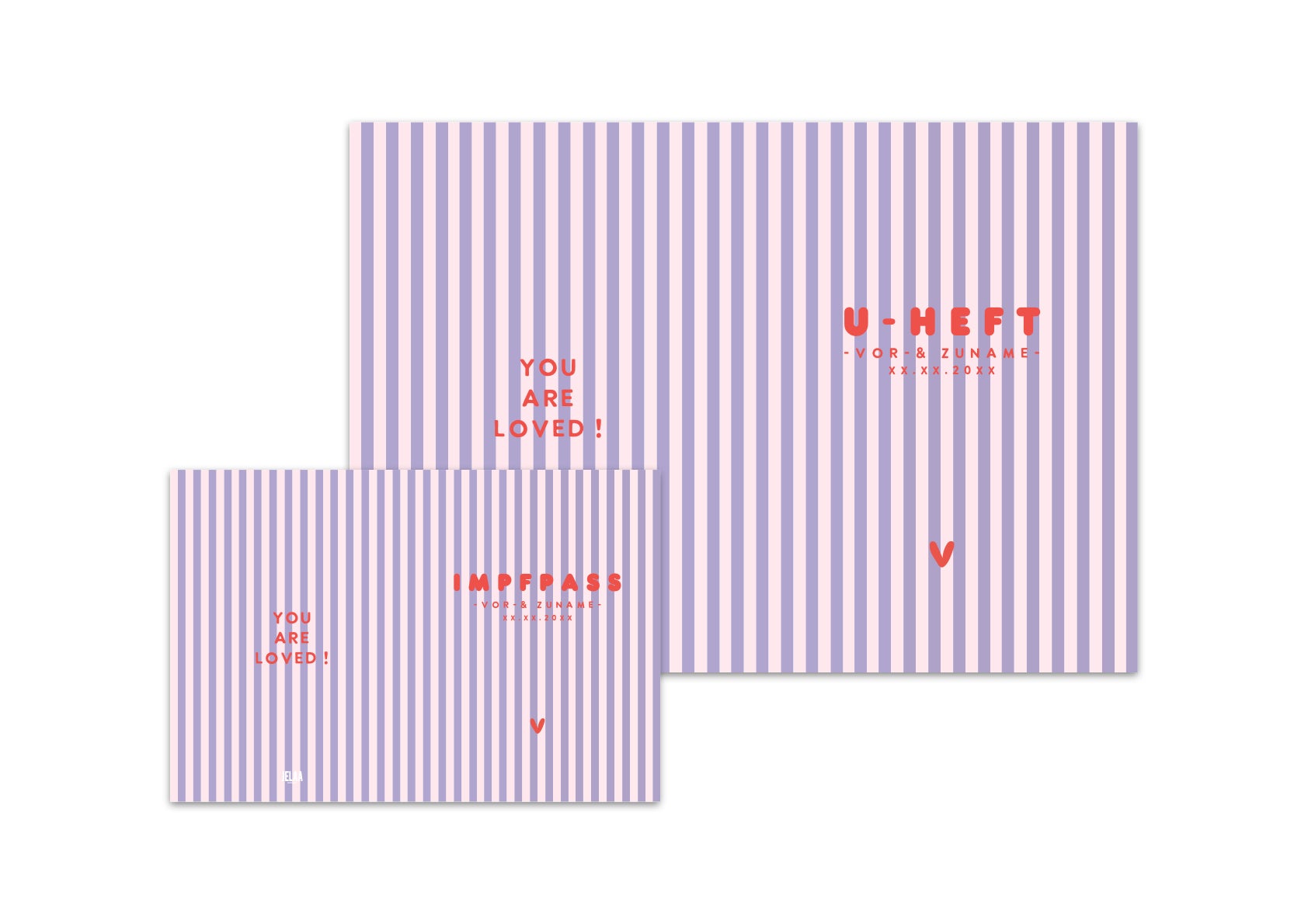 U-Heft & Impfpasshülle - Gestreift lila rosa